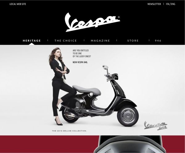 Το Vespa.com παρέχει επίσης σύνδεση με το e-commerce channel για τον επισκέπτη που ενδιαφέρεται να γίνει ιδιοκτήτης μίας Vespa 946.