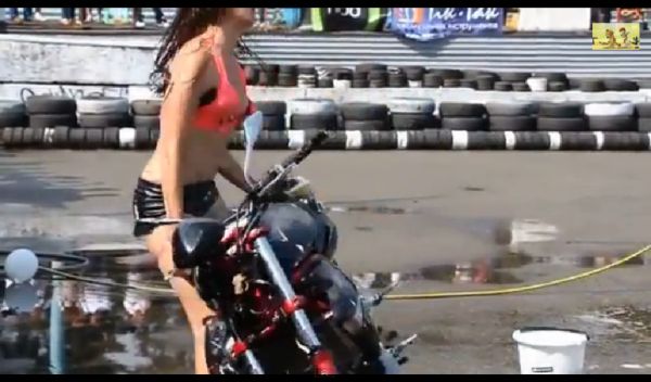 Ανεπιτυχές πλύσιμο μοτοσυκλέτας με μπικίνι