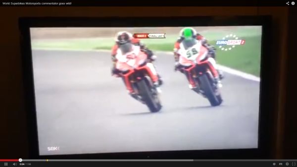 Oι Steve Day και Terry Rymer σχολιάζουν τον 13ο αγώνα στα WSBK 2013, Γαλλία, Magny-Cours. Όταν οι Sylvain Guintoli και Eugene Laverty (και οι δύο με Aprilia) πέφτουν, ο Steve Day υψώνει τα φωνή του κατά 5 οκτάβες. Η ένταση του ήχου πρέπει να δυναμώσει τέρμα, καλή ακρόαση!