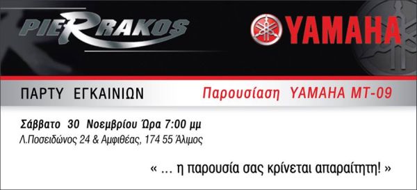 Εκεί θα παρουσιάσει και το νέο Yamaha MT-09. H εκδήλωση θα γίνει το Σάββατο 30/11 και ώρα 19:00.